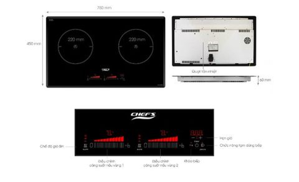 Bếp từ đôi Chef's nấu ăn nhanh, tiết kiệm thời gian với tổng công suất 4000W, Booster 3700W