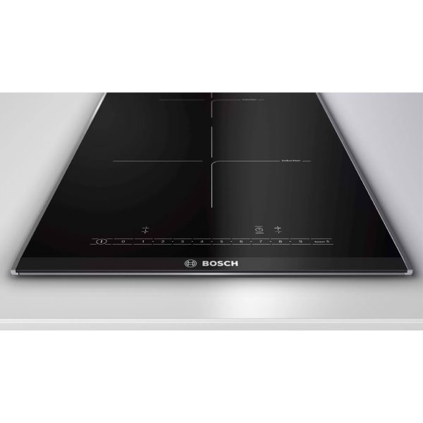 Bếp từ Bosch PIB375FB1E được thiết kế với viền nhôm cùng đường vát chắc chắn.