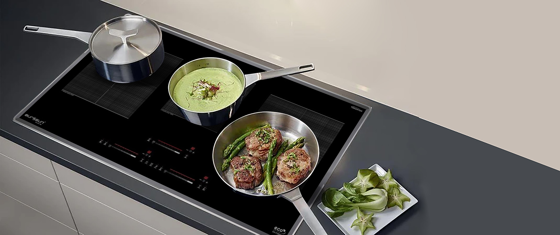 - Công nghệ Eco green- một công nghệ hoàn toàn mới được EUROSUN phát triển giúp cho bếp hoạt động êm ái và giảm nhiễu từ, ngăn ảnh hưởng tới các thiết bị điện tử, bảo vệ sức khỏe.