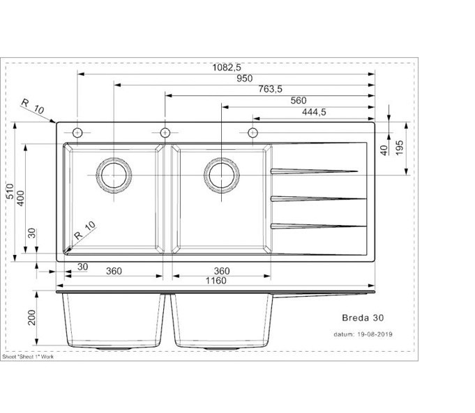 Chậu Reginox BREDA 30 Đen R33739 thiết kế thuộc dòng 2 hố cân có bàn chờ, chuyên biệt cho phong cách lắp đặt nổi trên mặt đá theo xu hướng.