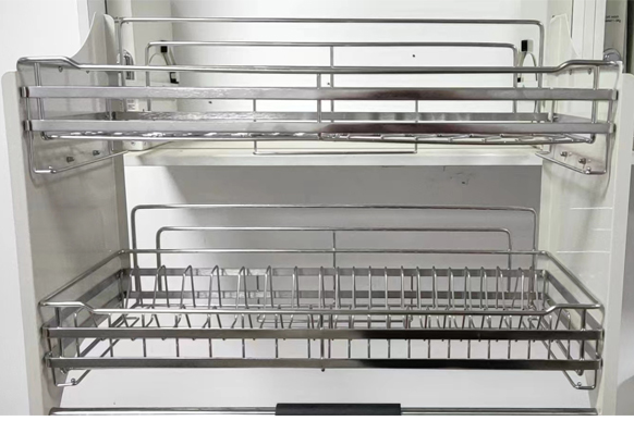 - Tay cầm nắm vừa vặn, êm ái giúp kéo hạ giá bát đĩa xuống nhẹ nhàng mà không cần dùng nhiều sức.