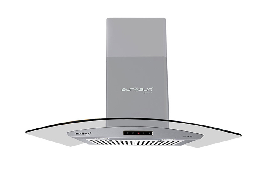 Máy Hút mùi Eurosun EH-90K26S là dòng máy hút mùi gắn tường thiết kế dạng kính cong. Thân máy inox kết hợp với kính màu dày 6mm tạo lên vẽ đẹp sang trọng hiện đại cho không gian bếp.