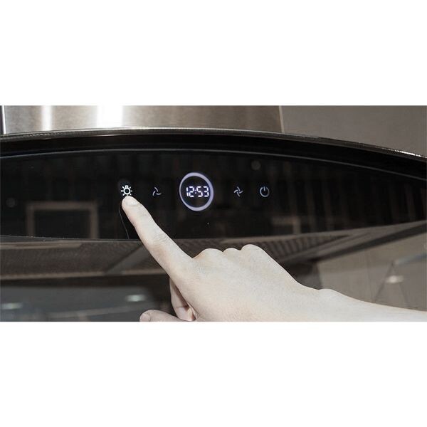 Máy hút sử dụng bảng điều khiển cảm ứng, giúp bạn dễ dàng điều chỉnh mức độ hút khói và khử mùi phù hợp với nhu cầu sử dụng của mình. Bạn không cần phải lo lắng về việc làm dơ bảng điều khiển, bởi tính năng cảm ứng giúp giảm thiểu tiếp xúc trực tiếp với bề mặt máy.