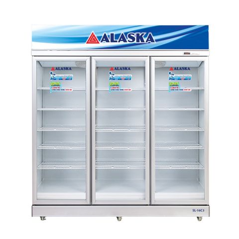 - Tủ mát Alaska SL-15C3 là dạng tủ mát cỡ lớn dung tích 1500 lít có thiết kế 3 cửa mở ngang, kính 2 lớp hút chân không giúp giữ nhiệt tốt. Hệ thống sấy kính giúp cửa kính luôn trong suốt.